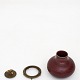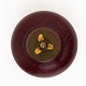 Sjælden lågkrukke i stentøj med okseblodsglasur, base og låg i delvist forgyldt bronze. Låg lavet af Knud Andersen. Signeret.