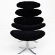 EJ 5 - Corona chair w. stool in steel and new black lambs wool.