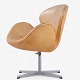 AJ 3320 - 'Svanen'-lænestol i patineret naturlæder på ny fod. Stemplet fra producenten.