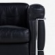 LC 2 - Lænestol i originalt sort læder med stel i stål. Stemplet fra producent.