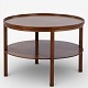 Rundt sofabord i patineret mahogni m. underliggende hylde. Mærket fra producent.
