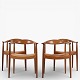 JH 503 - 'The Chair'-armstol i mahogni med sæde i patineret naturlæder. Mærket fra producent.