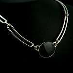 Sterling Silver Neckring with Malachite and Onyx.