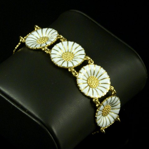Georg Jensen. 18 mm Marguerit / Daisy Armbånd i Forgyldt sterling Sølv og hvid emalje.