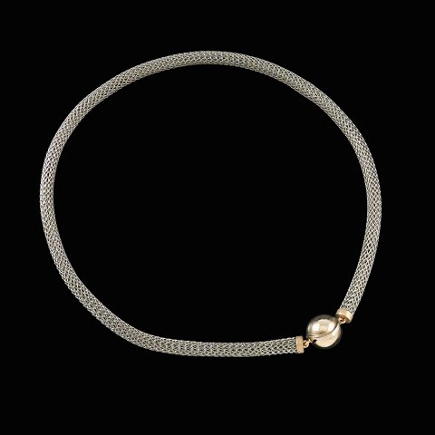 Ole Lynggaard. Halskæde i sterlingsølv med kuglelås i 14k guld og hvidguld.