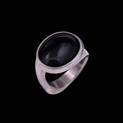 Hans Hansen. Ring i sterling sølv med onyx #10280 - Allan Scharff.