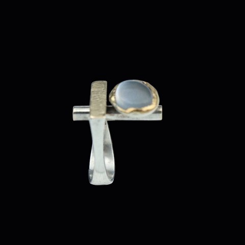 Ole Waldemar Jacobsen. Ring i Sterling sølv med 21k guld og månesten.