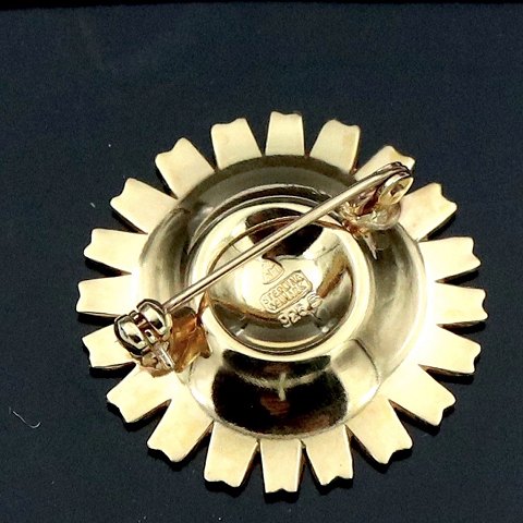 A. Michelsen Marguerit / Daisy Broche i forgyldt sterling sølv med lilla emalje - 33mm.