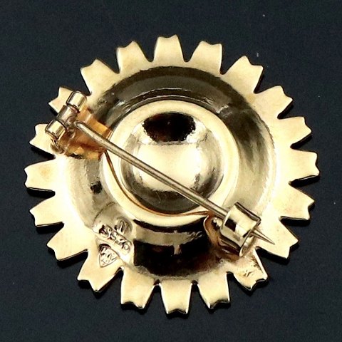 A. Michelsen Marguerit / Daisy Broche i forgyldt sterling sølv med grøn emalje - 33mm.