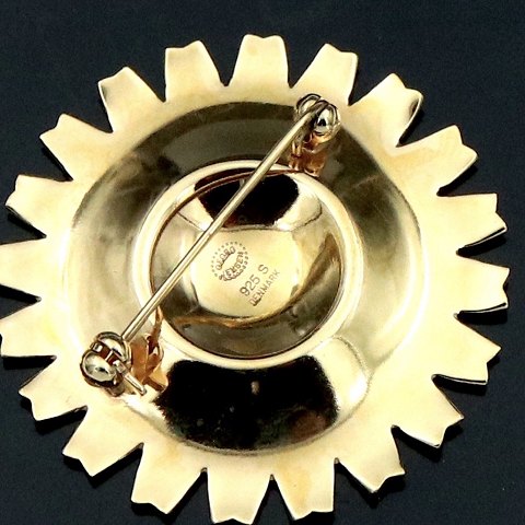 Georg Jensen Marguerit / Daisy Broche i forgyldt sterling sølv med blå emalje - 43mm.