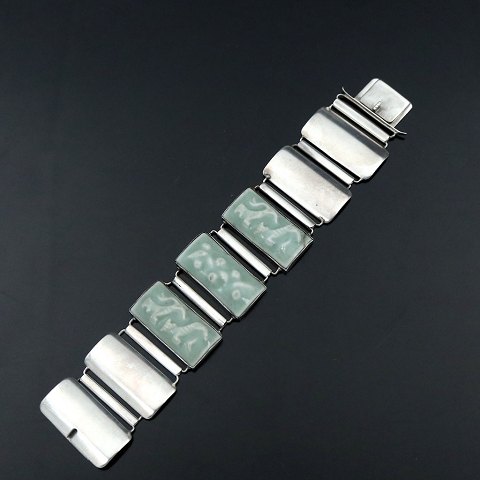Jais Nielsen 1885-1961. Armbånd i sterling sølv med keramik med celadon glasur.