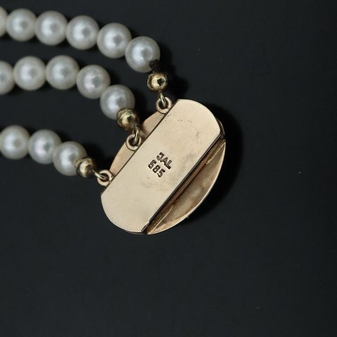 Paul Asger Larsen. Tre-radet perlearmbånd med lås i 14k guld med Jade.