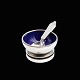 Georg Jensen. Saltkar #632 i sterling sølv med blå emalje med tilhørende ske - Pyramide.
