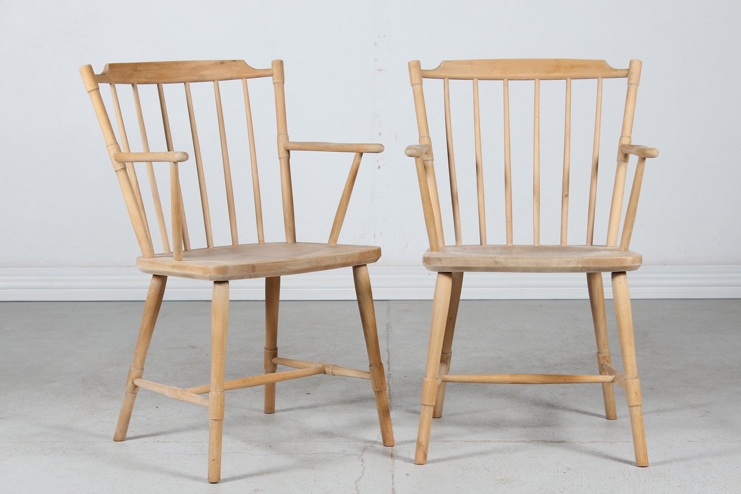 Danish Modern A pair of Windsor armchairs made of untreated beech wood Height 86/45 cm Length 55 cm Depth 51 cm Danish Manufacturer Nice vintage condition after normal use