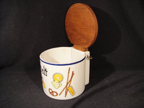 Saltkar med Teaktræs låg og ophæng Knapstrup Danmark. Flot stand