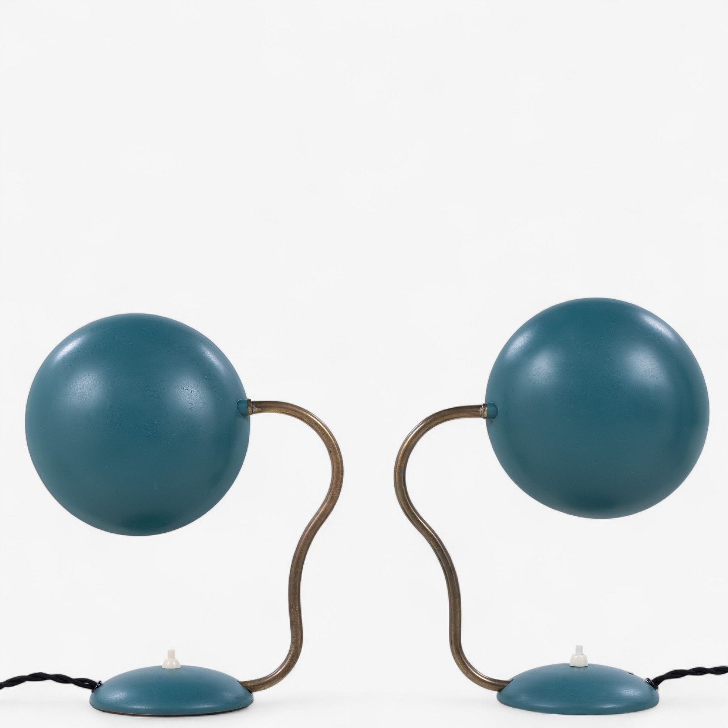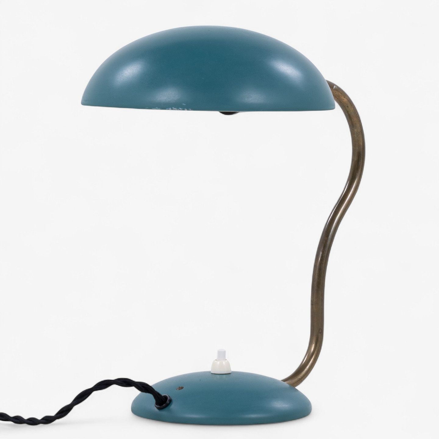 Model E1325 - Bordlampe i grønlakeret metal med justerbar arm i messing.
