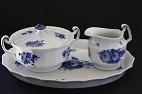 Sukker og fløde med bakke, Blå blomst kantet, Royal Copenhagen
