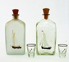 Kantineflasker med sejlskib, samt små glas, Holmegaard
