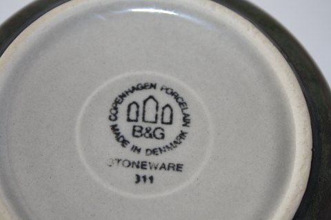 Bing & Grøndahl, Tema designet af Jens H Quistgaard 1970. Sovsekande nr. 311. Diameter 10 cm. Højde 8 cm. Længde med hank. Pris: 200 kr. stk. Lager: 2