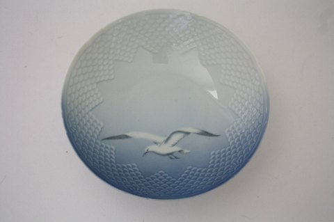 Bing & Grøndahl, Måge med guld. Opsats på lav fod. Nr. 428. II. sortering. Højde 6,5 cm. Diameter 20 cm. Pris: SOLGT