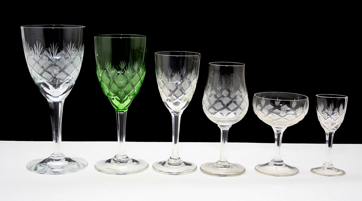 Lyngby glasværk, Antik glas med antik slibning og slebet stilk. Dette er et oversigtsbillede over størrelser.