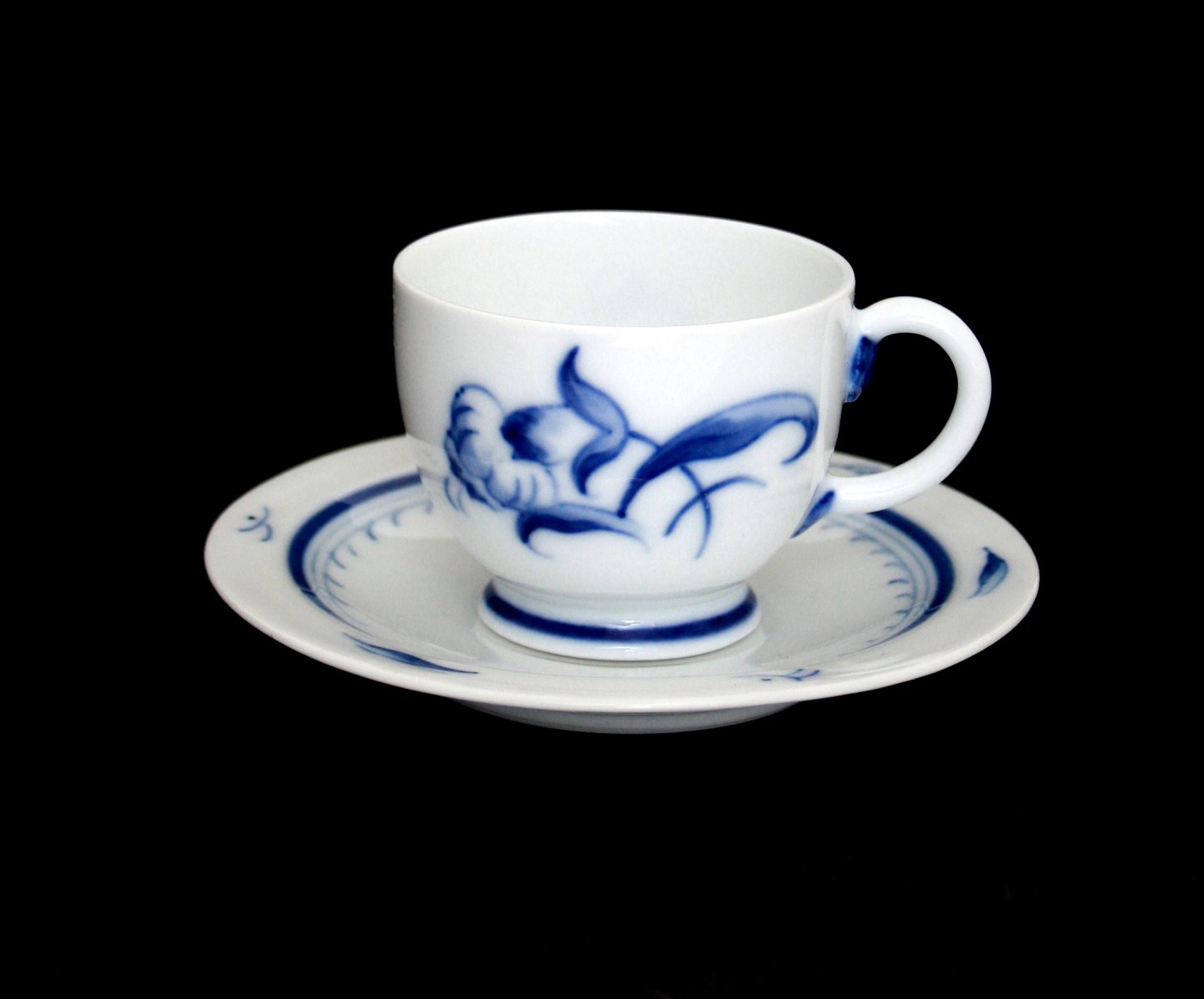 Bing & Grøndahl, Blå Nellike, Jubilæumsstellet. Produceret i 1915-1948. Espressokop, mokkakop med underkop. Højde 5 cm. Diameter 6,2 cm. Underkop diameter 12 cm. II. sortering. Pris: SOLGT