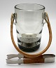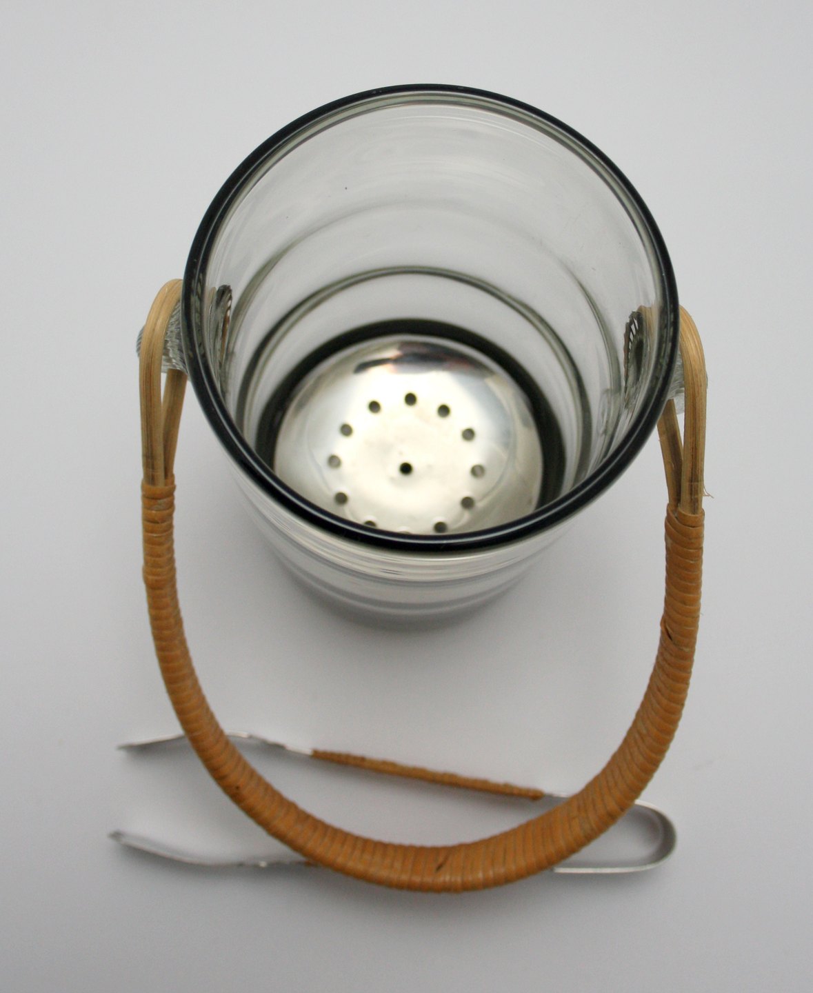 Holmegaard, Isspand i smoke serien med basthank og istang med bast og løs stålindsats. Designet af Per Lütken i 1960. Signeret Holmegaard nr. 8715. Højde 16 cm. Øverste diameter 10,5 cm. God stand dog med 2 lodrette ridser på siden. Pris: 375 kr. stk. Lager: 1