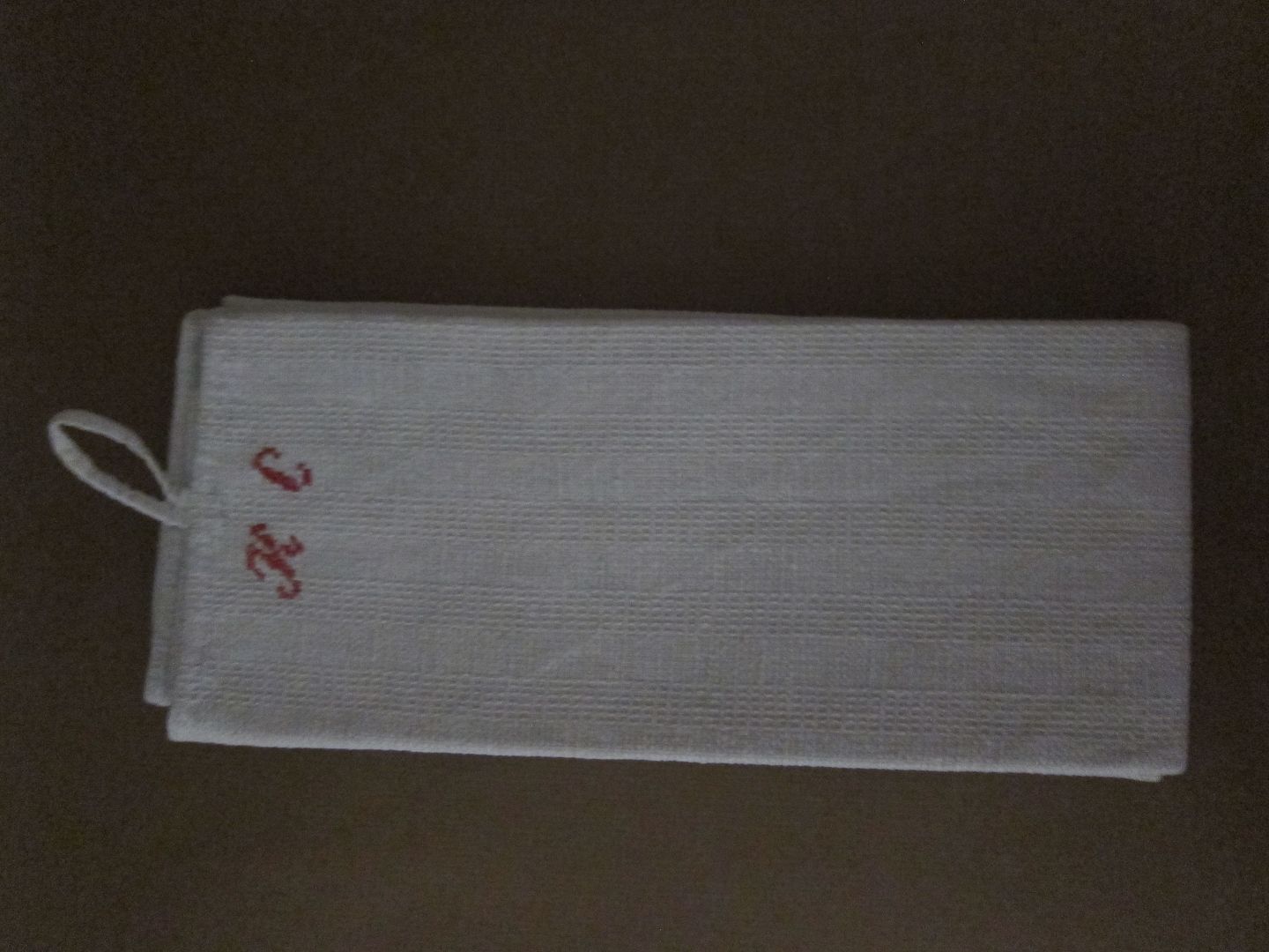 Med håndbroderede initialer og smukt vævet struktur