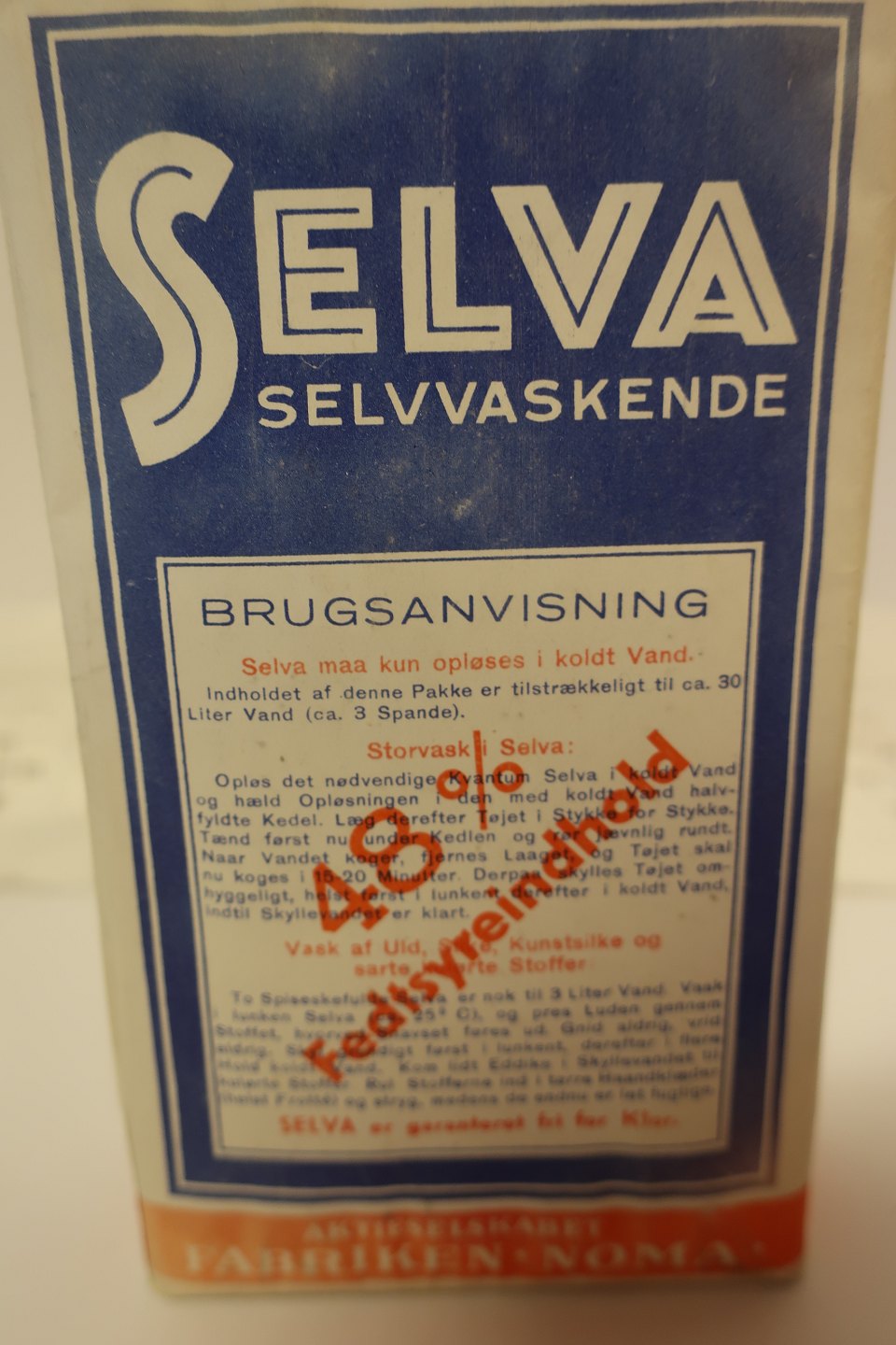 Vaskepulverpakke "SELVA" indeholdende det selvvaskende vaskepulver.