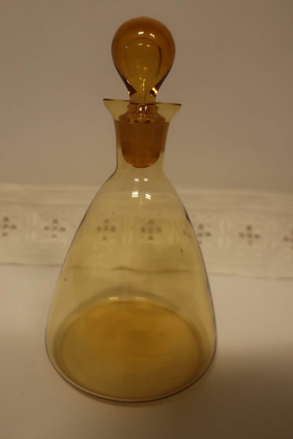 Decanter/carafe, glass with stopper H: about 21cm incl. stopper We have a large choice of antique glass, decanters as well as jugs Please contact us for further information Articlenr.: KL1006GL5